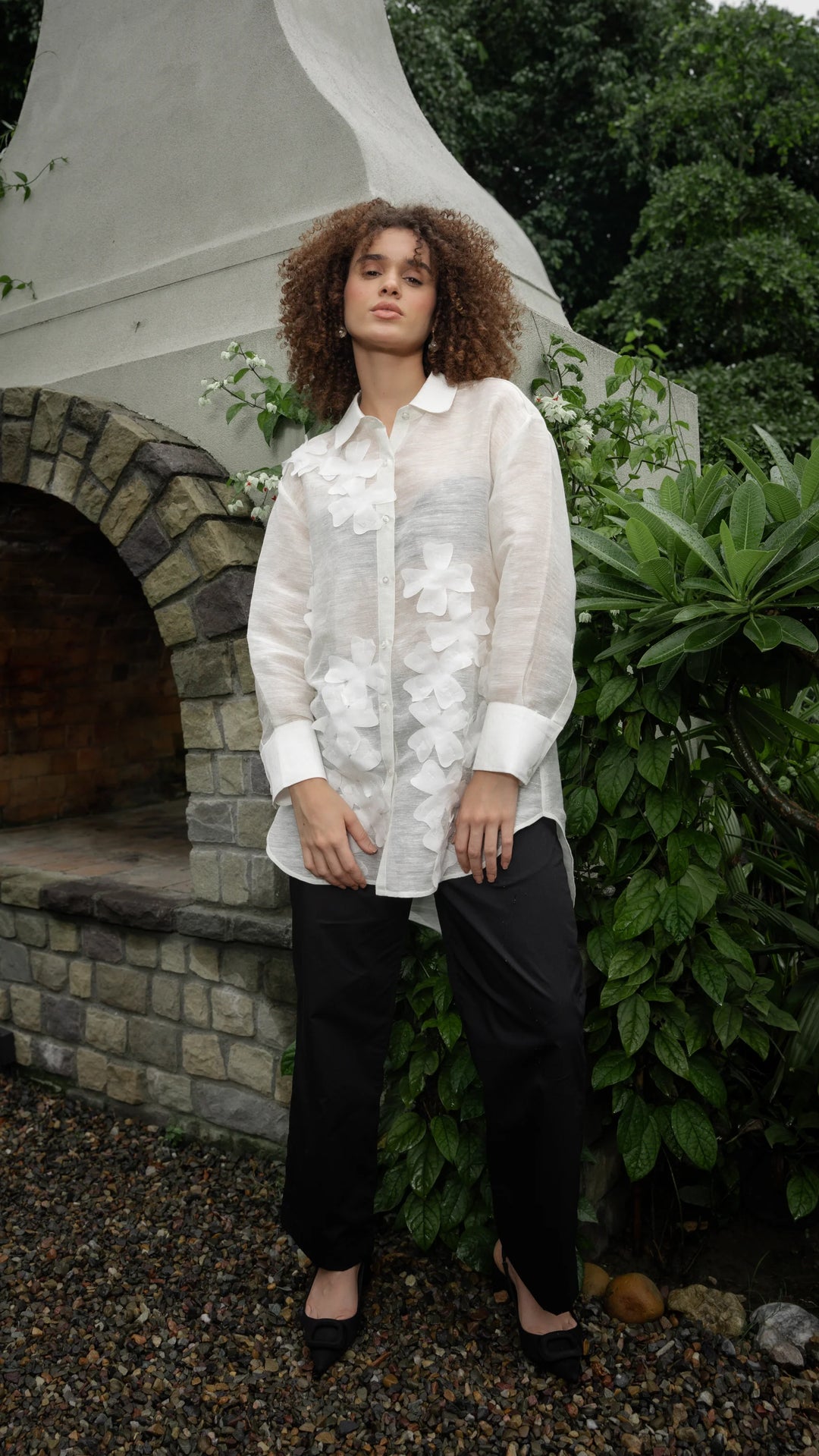 BLACK MAGNOLIA SHIRT DRESS