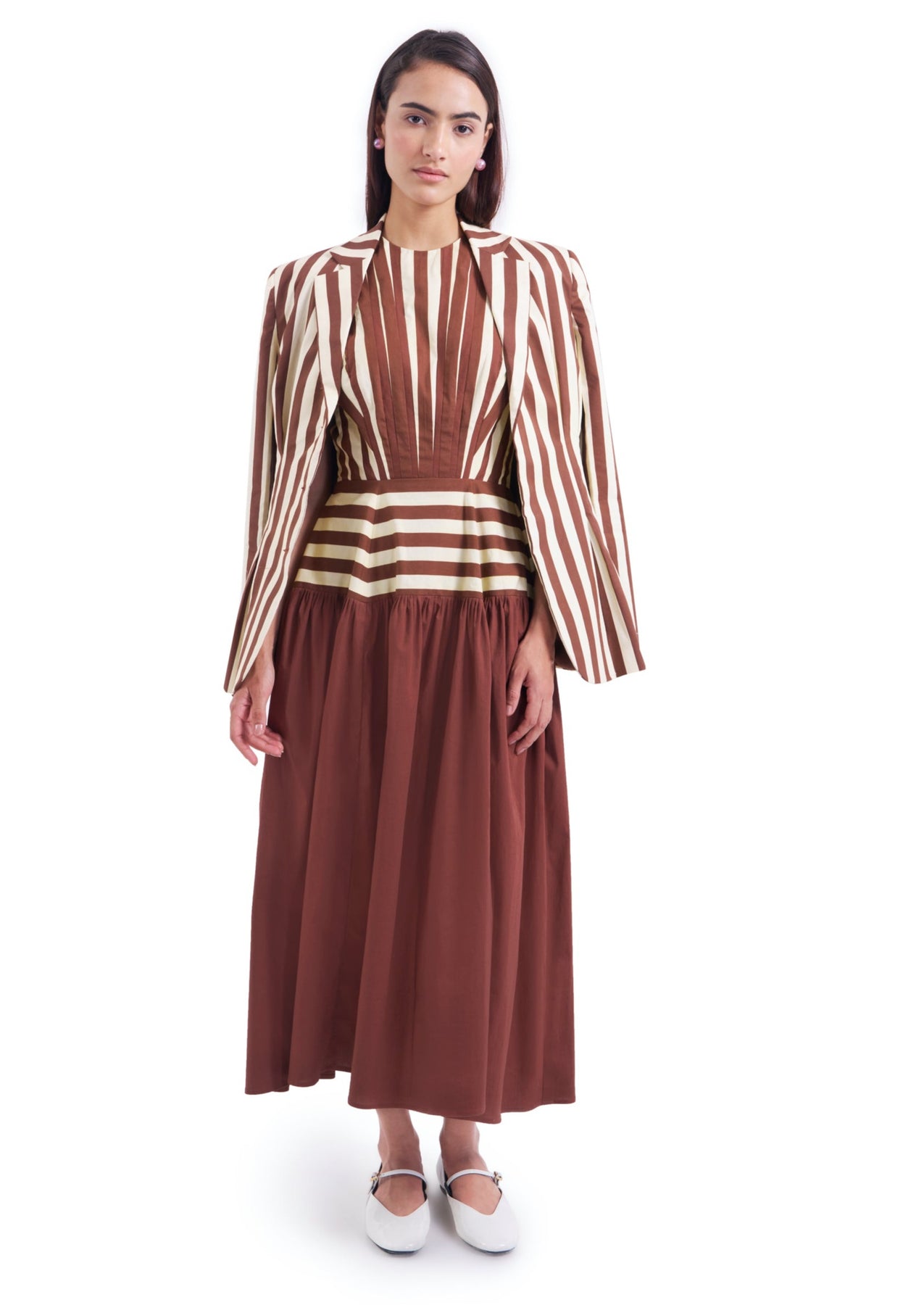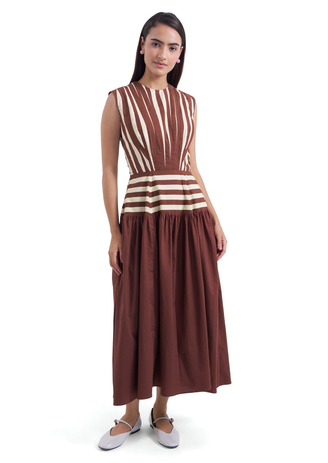 Step into elegance with our stunning stripe fitted dress crafted to accentuate your curves while the pleated detailing adds a touch of flair and movement to your ensemble.