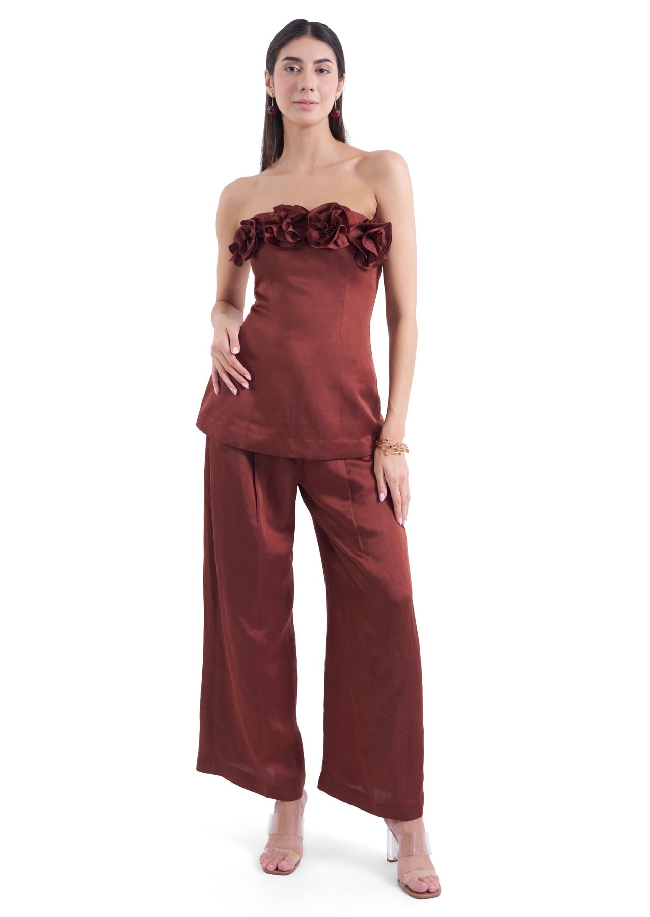 A fitted bustier is meticulously crafted from luxurious bemberg linen. Delicate bow appliques adorn the entirety of this elegant piece, adding a touch of romance and femininity to your look. The buttoned-down design with flap pockets on both sides, offers a contemporary twist on classic sophistication.