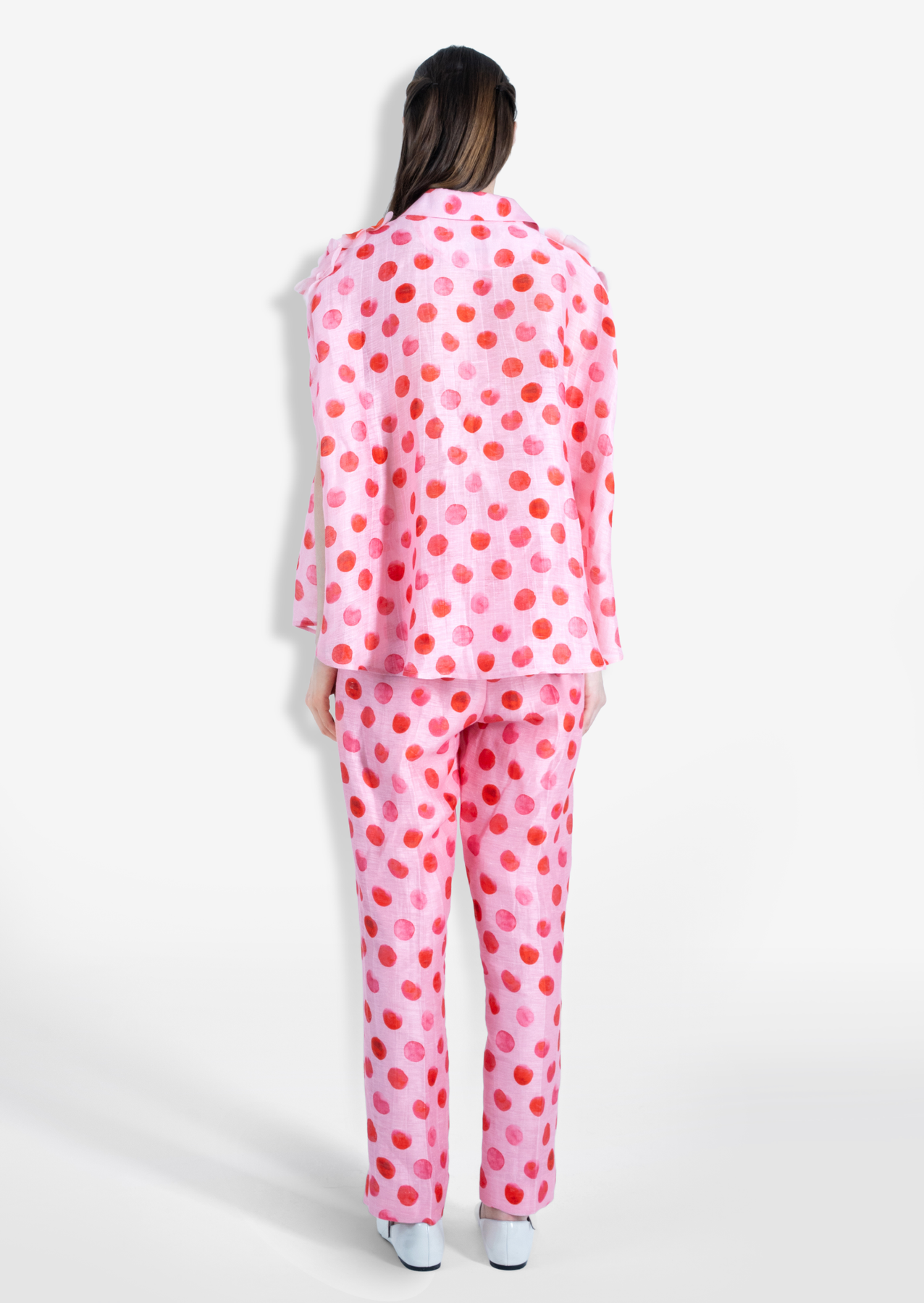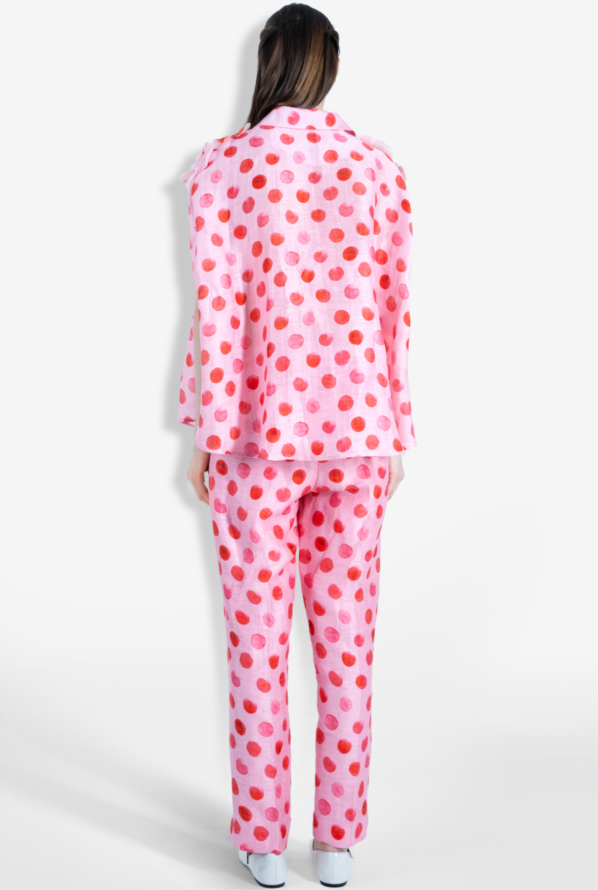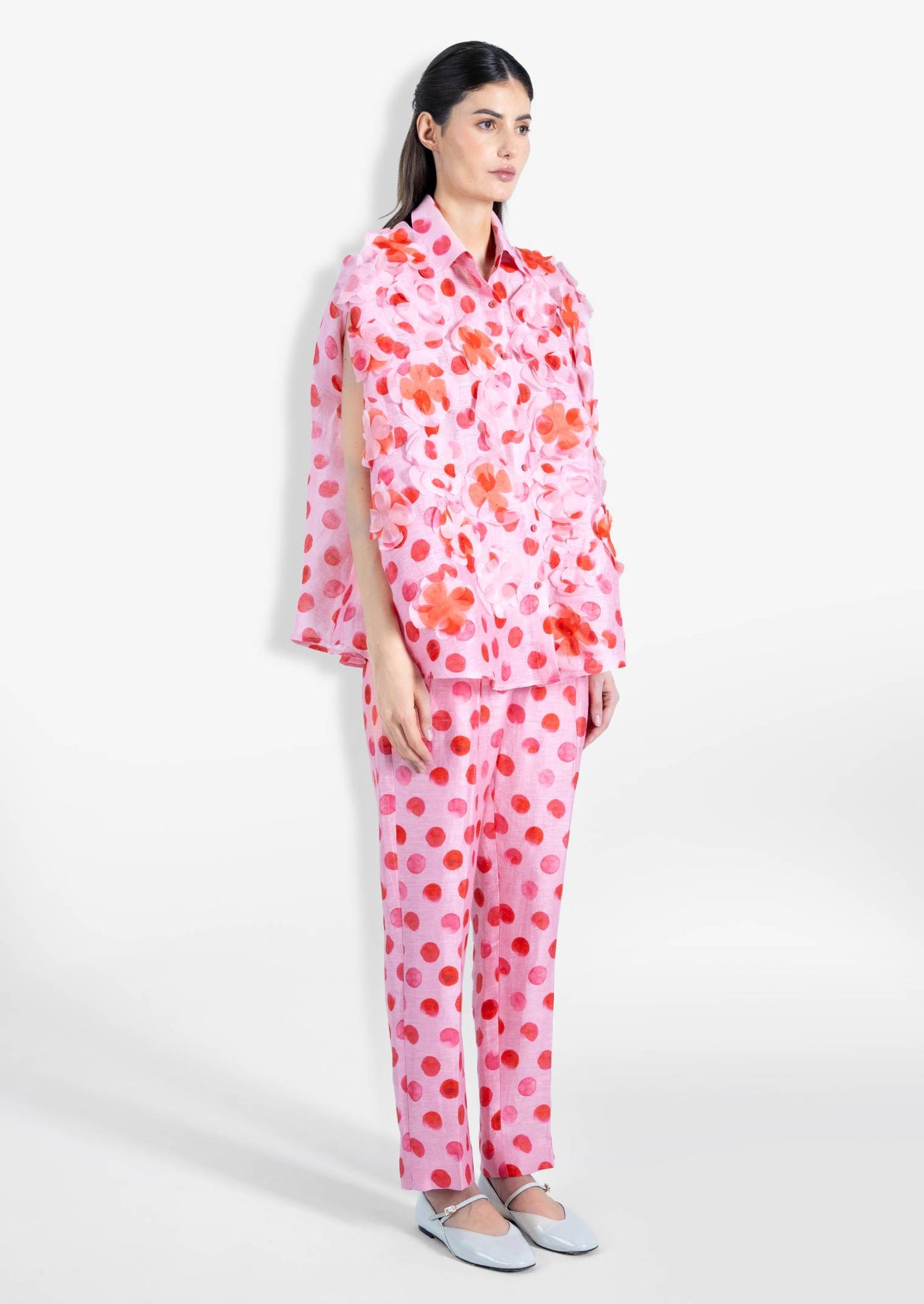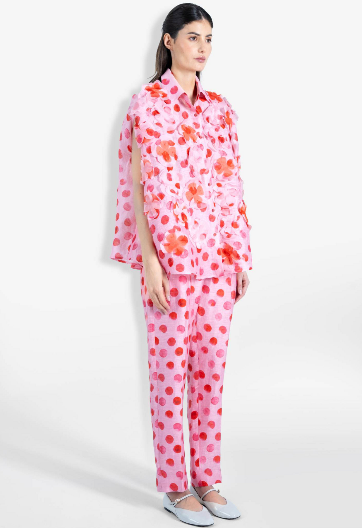Button-down shirt crafted out of Linen silk, adorned with delicate flower appliques.