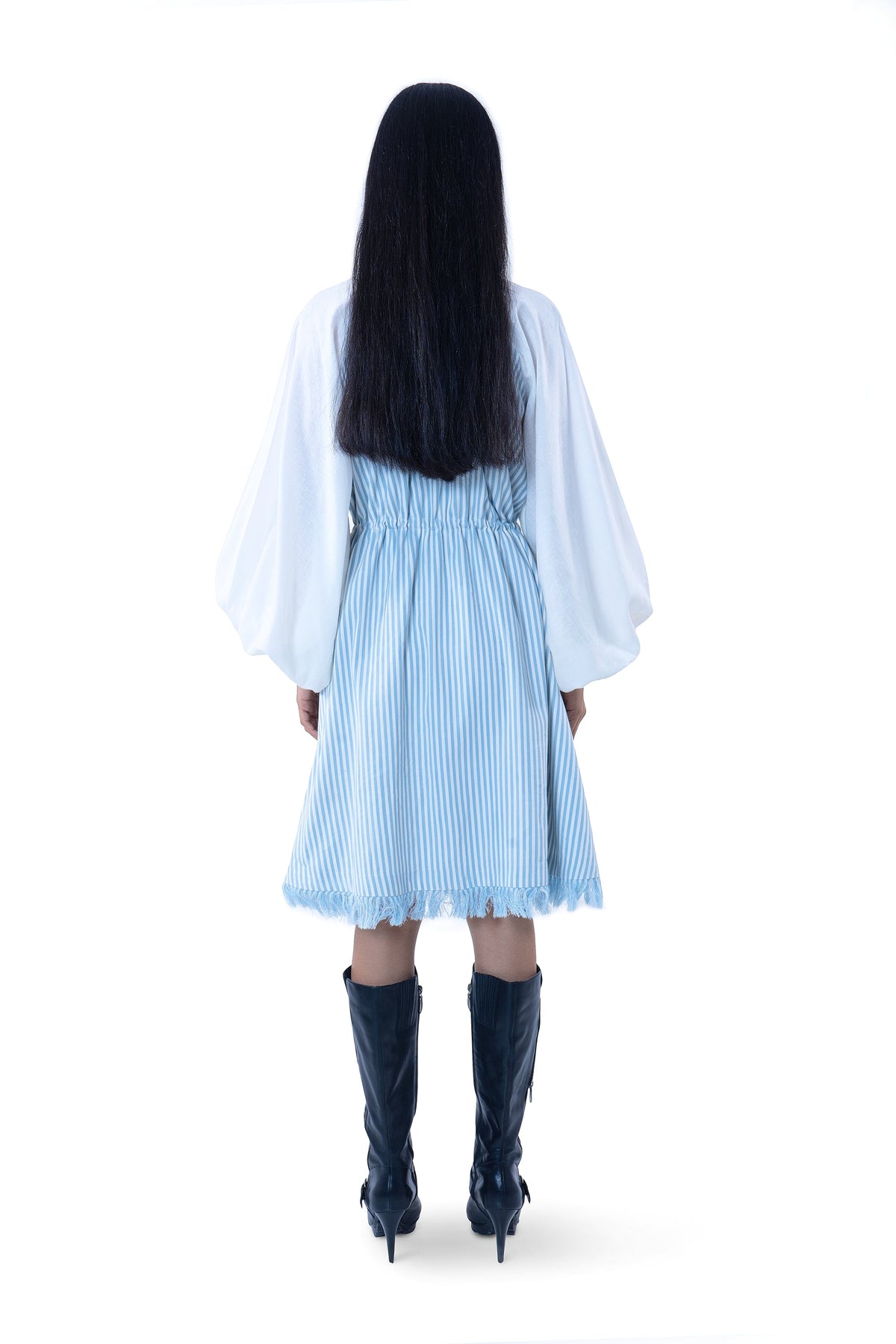 Crafted in Cotton Denim, it presents a loose silhouette with an adjustable waist. The sleeves offer a play on volume.